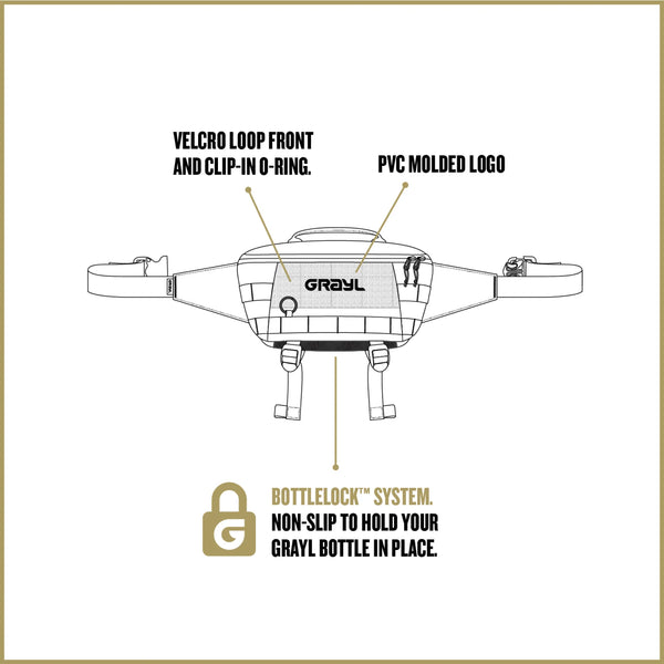 • BottleLock® Tie-Down System. Designed for your Grayl, non-slip tactile material firmly grasps and secures any Grayl or extra piece of gear.