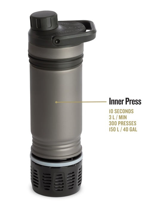 With the UltraPRESS Titanium, you have a water filter and water bottle in one. Hunting and adventure ready, take the durable UltraPRESS Titanium water bottle with you on your next adventure and create your own safe drinking water on the go.