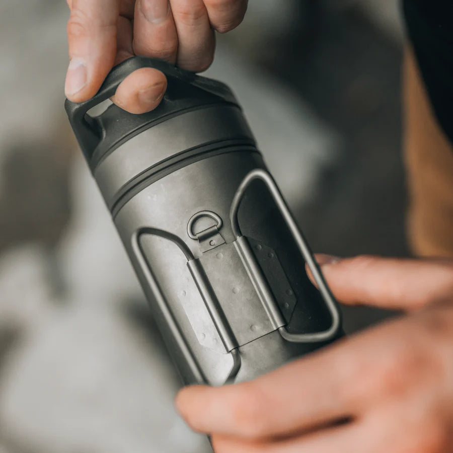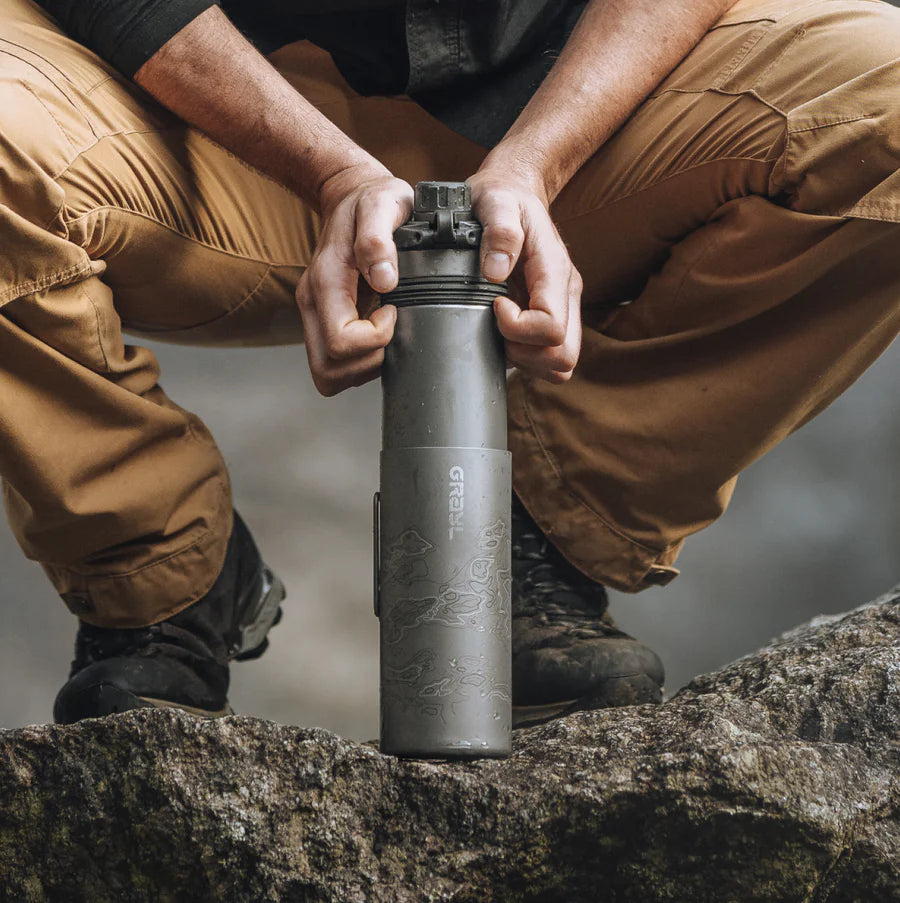 Purify. Filter. Cook. Take on any challenge with our flagship 24oz GeoPress® Ti Purifier Bottle. Made from CP4 Grade 1 Titanium, it is a functional masterpiece and fits perfectly into any pack pocket. Filter and purify at virtually any freshwater source, then bring it back to camp for cooking clean water over a stove or open flame. Meticulously crafted with the expertise of industry professionals, this bottle is the ultimate tool for adventure and performance.